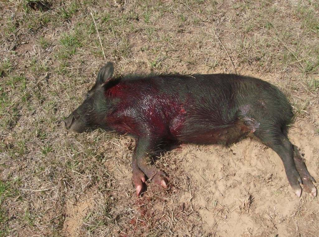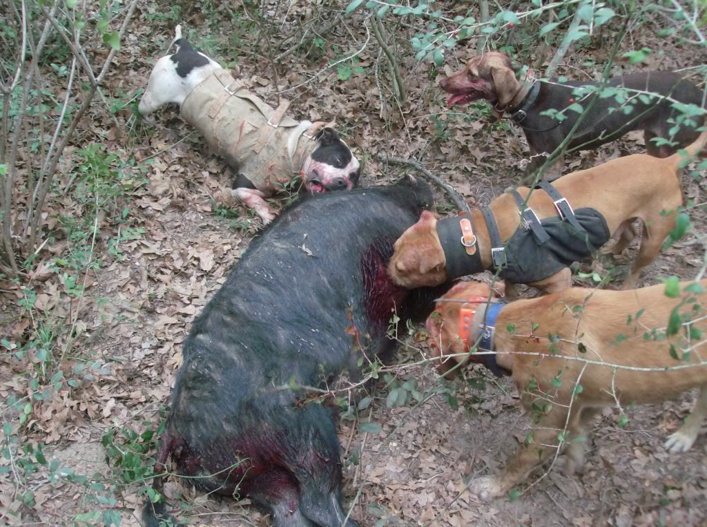 Jordan and I met up with Erik this evening to make a run. We had boone and ike cd kujo and he had magnum and cd tiger. Turned out and there was sign everywhere but for 1hr of hard hunting nothin then finally boone says heres one haha. Now there race was one i swear this hog ran clean across milano and was heading toward cameron lol. Never seen the hog but wen we finally caught up to them they had a pack of sows as usual. Sent the bulldogs in and caught a sow with three feet and a nub lol. Dogs rolled out and stopped another sow and we called it a day. first sow(we named her Mrs. Nubb)  second sow