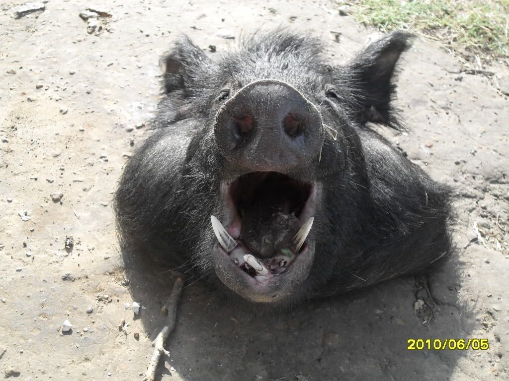 I didnt know either. It looked like his other teeth had been broken off, and that one just kinda stuck out there,. i kinda guessed it was from a old fight with another boar, but there is no telling. I think fighting the dogs pushed that last tooth sideways.  Huh?