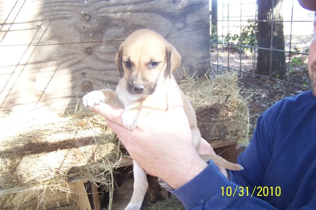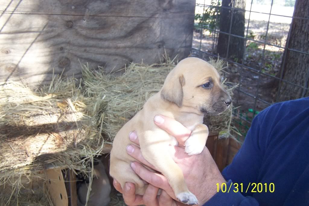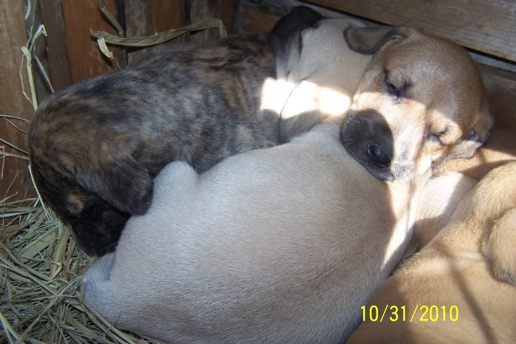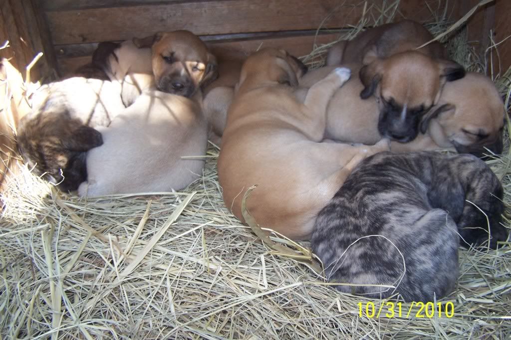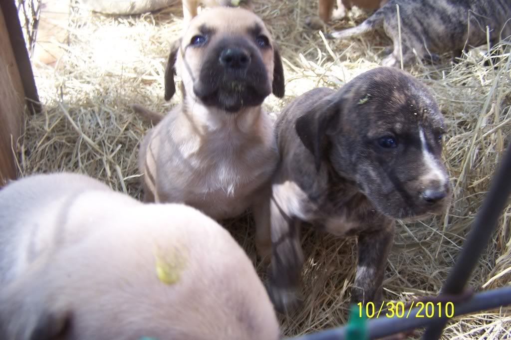 The pups turned a month old this Saturday and they are doing good. They were wormed for the first time this weekend and they have an appointment with the vet on November 13th to get a ckeckup their first round of shots. This means they will be ready to go on the 14th. We started them on peas, carrots and Gerber rice cereal this weekend and they are loving it. They aren't weaned yet, we are just giving this in addition. They are some very healthy pups so far.