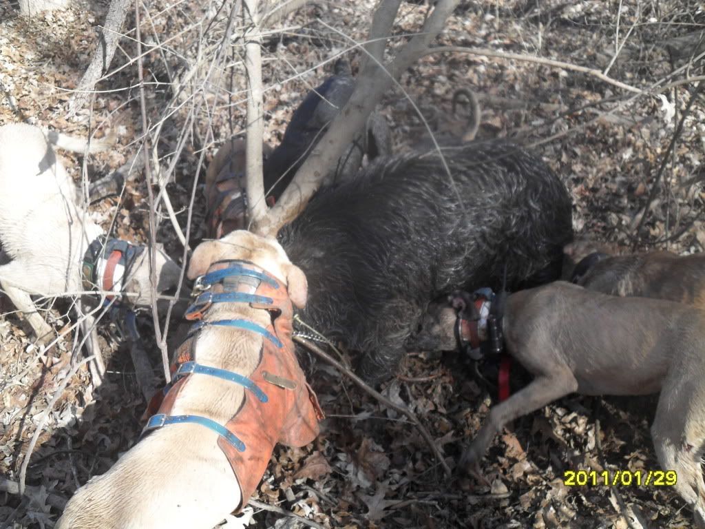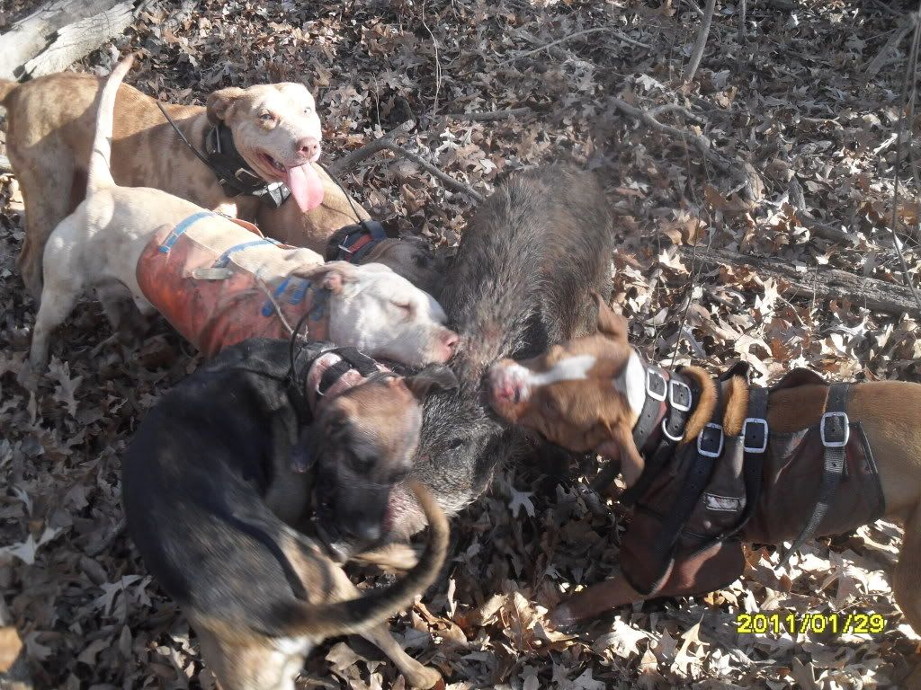 The dogs caught Several Shoat, but we could only get to 2 of them before the dogs killed them and rolled out. Molly struck a sow and they finally got her caught in about 10 foot of thick cat tails. Those cat tails are probably the hardest stuff i have seen a dog hunt in....they all really had to work hard to keep up with the hogs. The CDs sure had a hard time with the vests on, but Meathead, Max, and Maxs mom Layla were all locked on when we finally got through there.