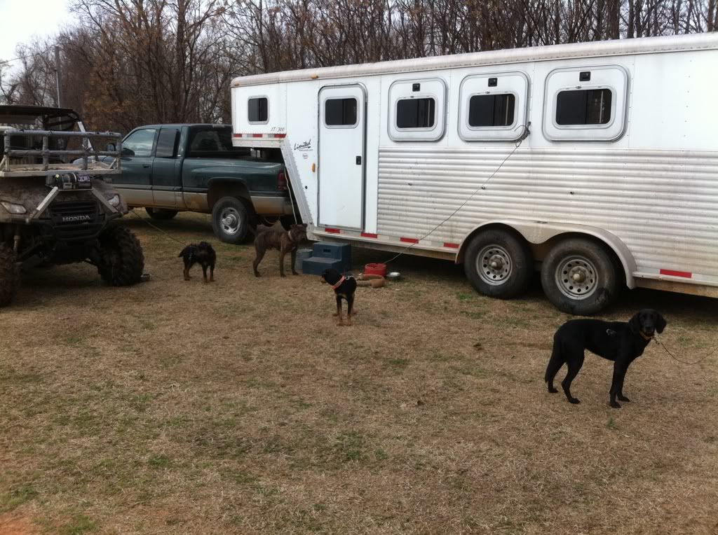 I think we caught 3 good boars, a sow and a little pig first night. All hogs have to be alive for weigh in at end of contest. I had a borrowed Croatian import that Dr. Larkin owns, imported by Goran, along. Biscuit (aka Elvis) snuck back and maybe killed one hog we had tied up to a tree and left, so maybe he cost us first place. Winners are based on total pounds of live hogs brought in at end of 24 hr period. We got beat out for 1st place by a team with a mess of sows and little pigs. Our big boar strategy did not pay off this time!
