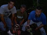 We brought the (9) pups out with a RCD and a strike dog to do a little woods training, got to a small wooded patch on 500 acs. Well my strike dog let out and within seconds was on one, we running thru the woods and dogs in all directions head the same way we were. We come around a big pecan tree in this thick under growth and there he is, a 300 lb'er with my RCD attached and all the pups all over him. This hog was caught and was going nowhere, my RCD on his ear and pups all over his head. We got closer and the plan was to tie if we got one on this trip but once we saw him and how far we were in this thick junk, we stuck him.