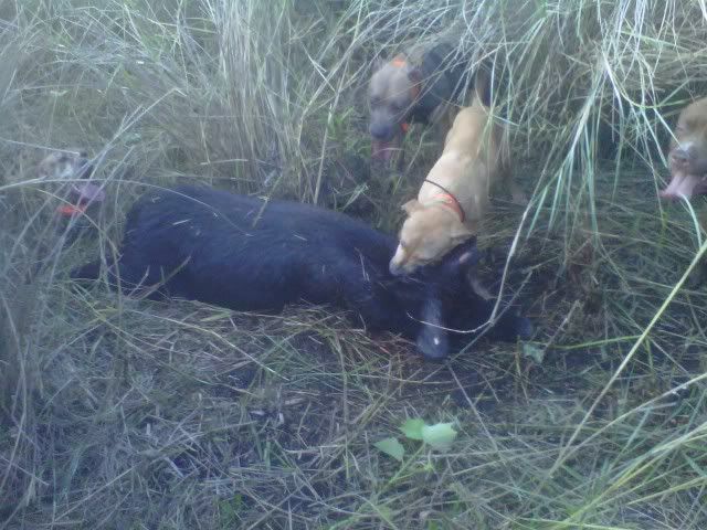 Man I just got back from a hunt with my pups and cd's man let me tell you I'm really happy with how they have turned out thus far!  first my pup bolt is a catxbull and is 10mo the others are roscoe and hoss litter mates at 7mo and they got me 2 today! The pups once we caught one were heated up then we got the 2nd and then on fire! Then they ran another 600 yrds. I know this because I put collars on them and thank god I did! But then after that it was noses in the air and running every track they cake across! The hogs weren't monsters but happy non the less! About 130 and 75 lbs.... can quit smiling!  Bolt (right) roscoe (middle) hoss (left)  Ziggy cd (right) roscoe (left)  Roscoe won't quit!  Cooling off!
