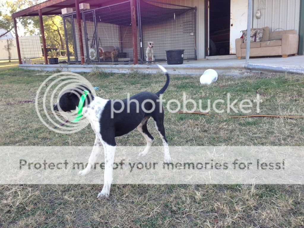 This is a 6 mo old female I kept from my Betty dog (pitXdane) and Tcolts Deuce (dogo). I hope she's fast! If anyone else with pups from this litter wants to, post a pic of some of the other pups.