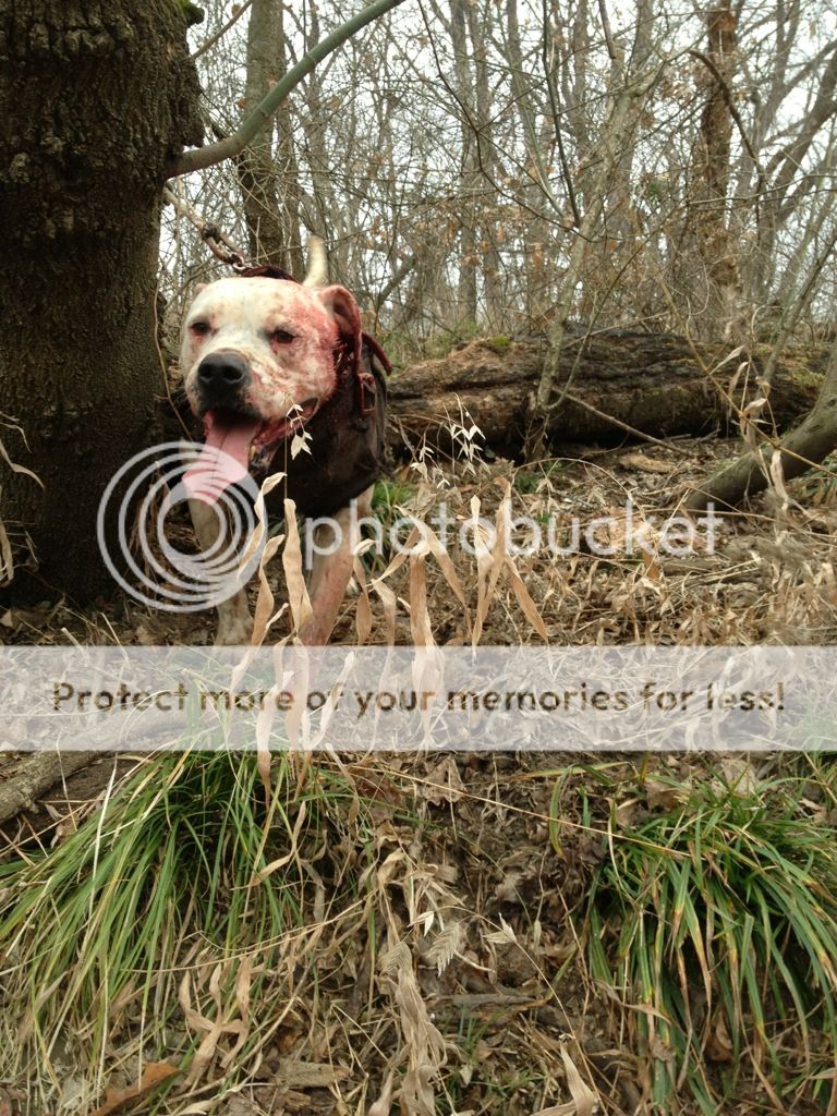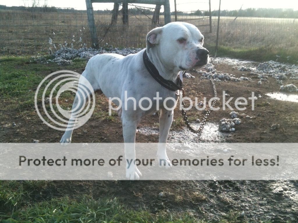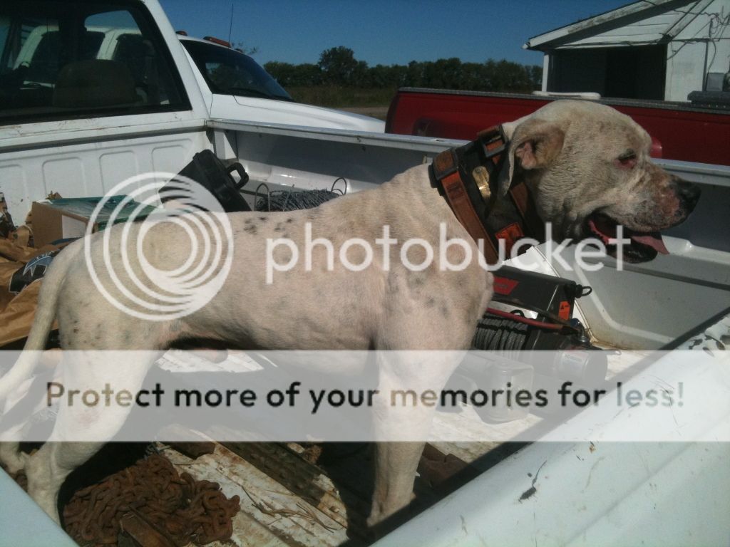 i have an american bulldog, max, that ive had for like 3 or 4 years. hes around 6 or 7 years old. i used him to catch pigs for a while and the guys that had him before me used him on pigs as well. his mother is from indian valley ranch (britt garcia) line and the sire is from marcus jenkins in greenvilles line. he is registered but i dont have the papers. my delimma is that i dont use him any more. i took him huntin yesterday and he did good but his problem is his breathing and leading. he has always pulled real bad so he makes it hard on him self to breathe. plus hes got some of that show dog bloodline in him. and i have a pit now that can run for days and not loose his breath so theres no point in takin max. hes a very stout dog and will not quit on anything. i just feel bad for him because he never gets to go. i was just wondering if anyone was wantin a puppy trainer or a yard dog or somethin? he dont get as much attention and running around time as he needs. his temperment is perfect no aggression issues at all. my girlfriends cat actually attacked him when he was in the house once and he just stood there and took it. im not lookin to make any money off of him i was just wondering is there was anyone out there that would like to give him a good home? i really like him and to be honest am kinda attached to him but at the same time i would like to see him go somewhere that he could be used more. if i could let him run around loose here at the house i would. he would be the perfect dog to cross with if you were lookin for some bully crosses with a lot of drive. ill quit ramblin now i just thought i would check and see if any of yall are interested. if not then he'll stay here at my house till the end of his days. thanks for lookin, chase greenway this first pic is from yesterday the others are older ones