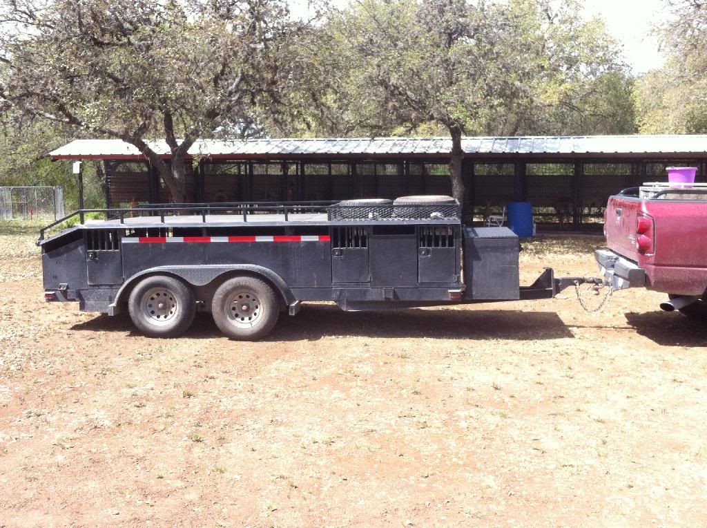 Anyone here have a small dog trailer? I'd love to see photos if so. Trying to get ideas. I'd like something small, that would have around 6 individual compartments, properly ventilated but to where people couldn't easily see the dogs inside. My ol' man and I have been considering purchasing one possibly in the near future. Don't know if I'm going to be able to find one for sale though or if we will have to have one made to order. Thanks in advance.
