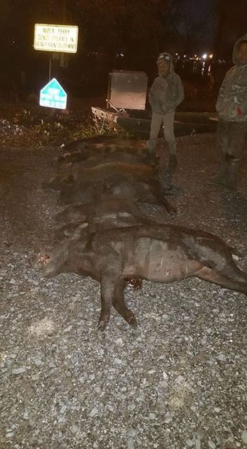 In the meantime TJ's Dad had killed a couple of hogs sitting on a stand that we had drove out & another guy shot a shoat. One of the dogs caught another shoat.