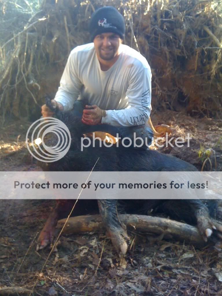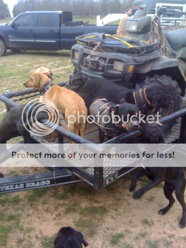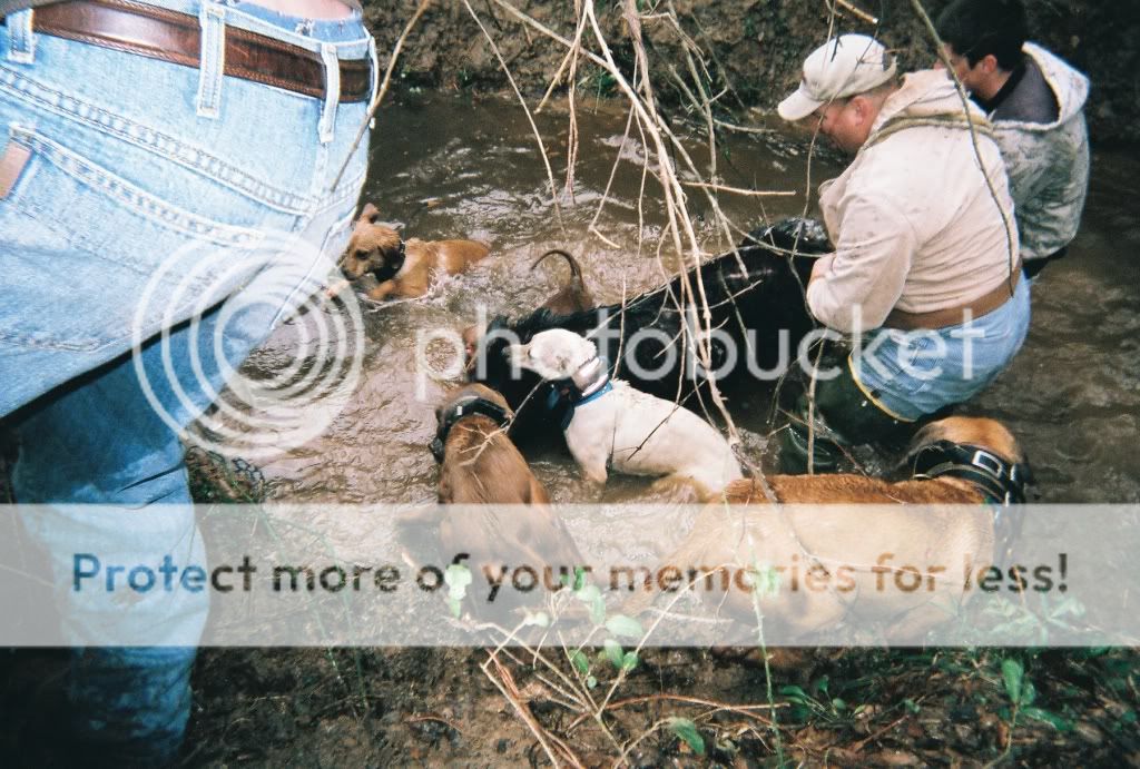 About a week ago Big E, Colby and I went hunting over in Madisonville with a boy named Ethan. It was after a rain and the dogs were fresh, after a quick coyote chase, the dogs straightened out and one of Van Dorns young gyps, Miss Anne, made a big loop and struck this nice boar hog. a few minutes later they had this guy sit down in deep creek. It was pretty funny, we were running into the bay and I was a little behind Ethan and the other boy. We had a few creeks to cross so I was shedding all my electronics... and the dogs are about 30 yards in front of us and hammering. We had 7 or 8 cur dogs baying in there so i knew right off hand he was gonna be pretty solid.. anyways back to the story, so the boy gets in there first calls out to me and Ethan that its just an 80lb boar hog. lol i had to take a second to pick my jaw up i was laughing so hard, I tried to get my camera out to catch his reaction when his 80 lb hog turned into a very angry 200 lb boar hog!! after a few minutes we got him caught, drug up out of the creek and tied... From there we wnt right over the hill and Big E's best dog Roscoe bayed a solid group of 10 or so. We soon had a rally going with all the dogs there. A 50 lb shoat shot out and every single last dog left out after it leaving me 20 yards from the other 9.. that quickly scattered.. including a very fat red Barr!! a few seconds later big e's gyps Parvo, Roxy and miss anne coming screamimg through. 3 county roads and 6 hog later we finnally got the gyps all caught. here's a few pics of the boar hog, everything else we caught were 100 lbs or less  Miss Anne is the small brown dog up front  Roscoe, Drake, Boogie and Big E legging him   Ethan and I  On Wednesday Brandon and I went out to our deer lease in New Waverly. I very rarely ever hunt by myself and never take all of my young dogs. But since it was just Brandon and I, I took alll 3 of my yearlings and even my 7 month old pup Moon. SHe's the same one that i Had put up for sale because I wsnt hunting her.. I later began 2nd guessing myself and decided to keep her for a while longer.. and iM sure glad I did!!! We were going along hunting and Brandon's dogs had rolled out to the east.. Drake and Fawn had rolled out to the west ad were in the other end of this block of woods when Sadie and my pup Moon struck him. Soon all my dogs were in on it but we went ahead and decided to leave them for a little while bc it was showing B's dogs to the East to be bayed. Well we got over there and their hog had broke and now it was showing Saide back bayed a mile in the other direction. My rough gyps had already been catching him or and were cut up pretty good when we gt there. Fawn had gotten hit in her throat and had quit him, she was just laying down watching the bay . My other gyp and bmc were cut pretty good too. I was a good bit ahead of Brandon, the cd and my gir Candace so I decided to call Marshall while i was there waiting. I knew he was at work and would enjoy listening to the bay. he got a pretty good play by play as i walk up and see all my dogs cut, luckily B gets there quickly and his young catchdog Cash and Drake get him caught. I just sid my phone in my pocket and let Marshall listen to everything.. Even the comical moment when broussard and i realize neither one of of us have a rope and have to kill him.He was only about 175 lb boar hog and his teeth were so small they werent evern worthy of a pic but those 1 1/2' stiletto's worked my gyps over pretty well. Broussard's gyp Sky and my Moon pup then got on a track star and ran him for about 2 hr's before finall quitting him. This was the first good hog hog Ive caught with just my young dogs that i can 1000% say they found him, stopped him, held him for a good 30 min and caught him when i got there.. Here's a few pics fro the hunt  moon and Fawn  Drake, my year old BMC  Sadie