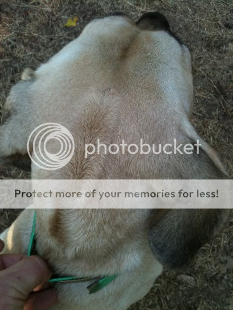 Thats about like mine tnhillbilly its a cowlick above the collar and turns completely backwards like a ridge toward the top of the head. I took a better pic.