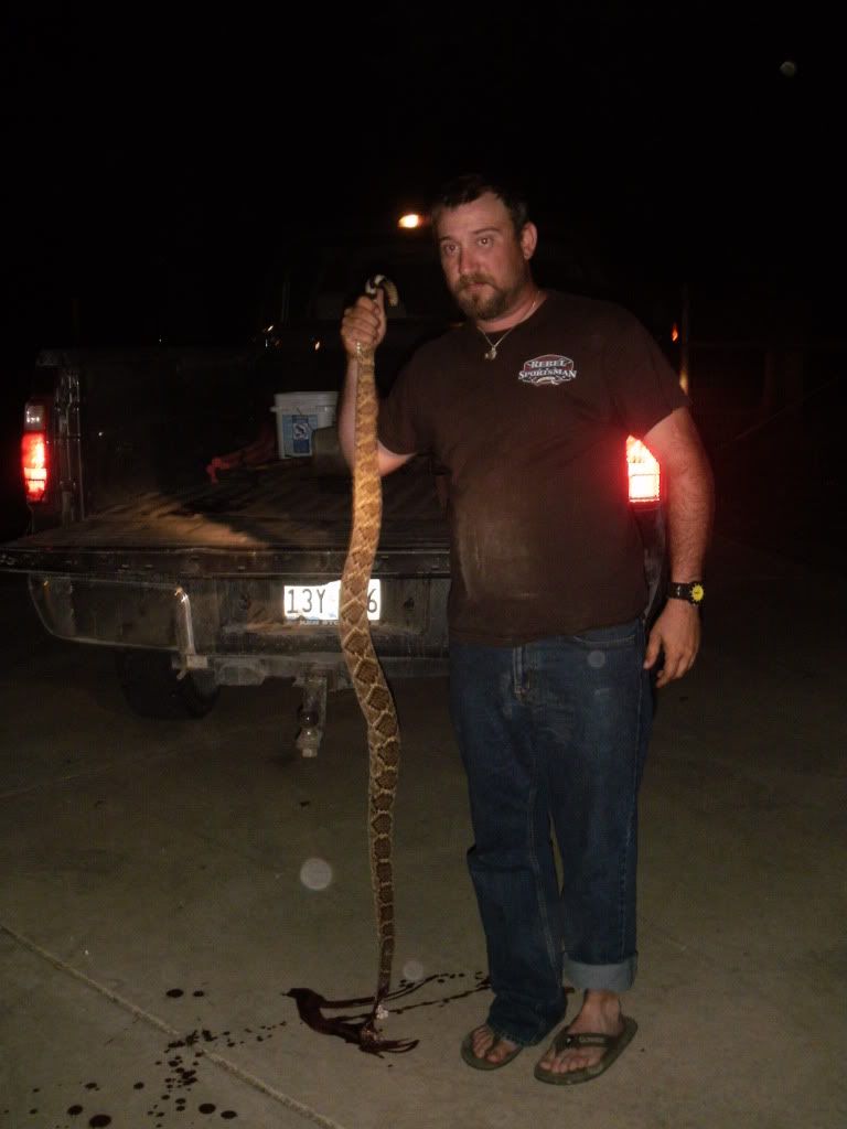 Got this rattlebug tonite. Could have been a really bad night for a dog. I'm a little over 6 ft. So thats a size reference.  Bobby are you saving those hides for me?