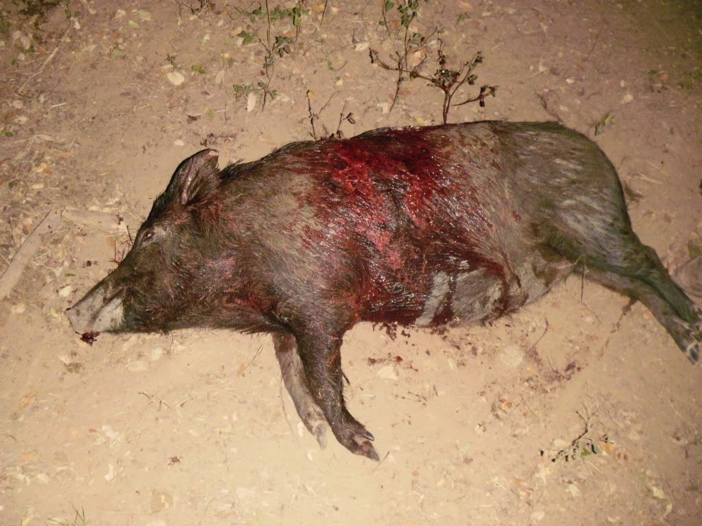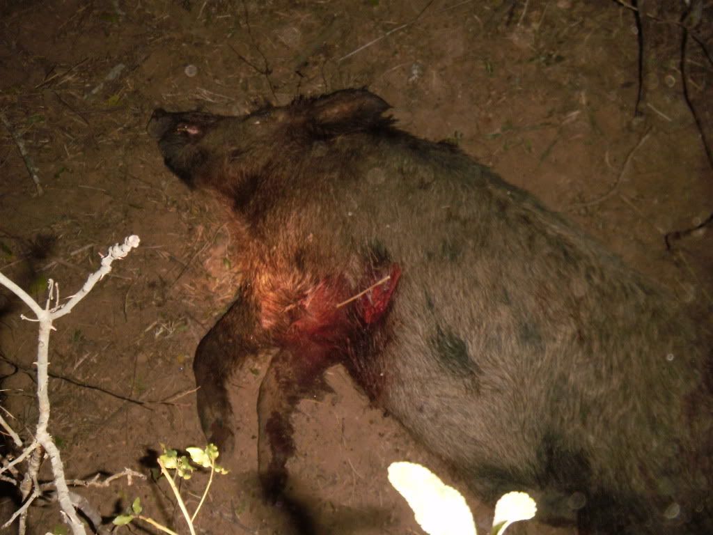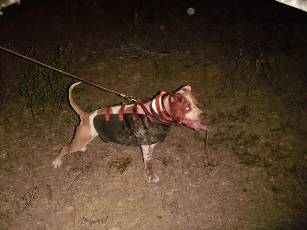 Made a pretty good hunt last night with my buddies Pete and Roy. Pete and I met up with Roy around 8 or so last night and headed out. This is the first hunt for one of the dogs (Rowdy) in six or more months, he had his jaw broke for the second time and last night was his first time to get out and see how he'd do. Well he did great for his first time back and we ended up gettin two good sow's.