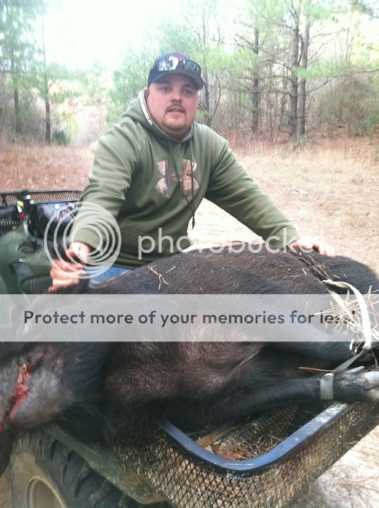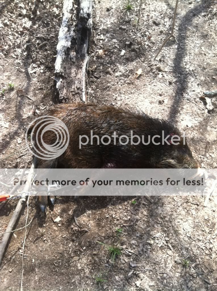 Turned my half hounds loose an they winded immediately 15 min had this big sow hobbled