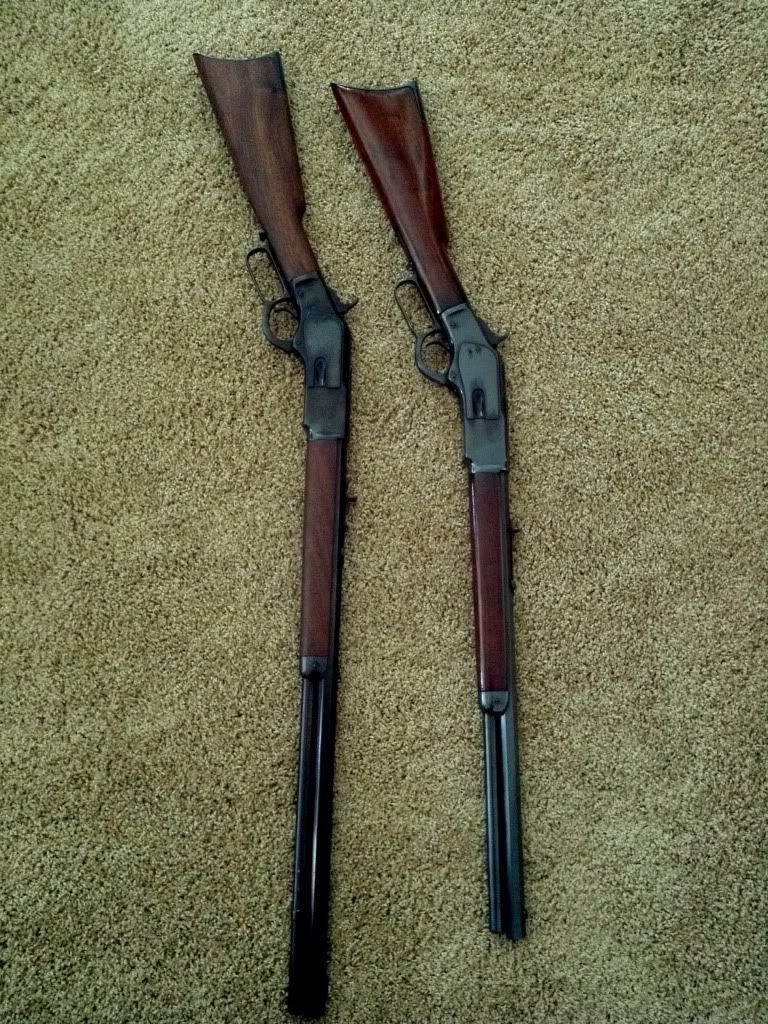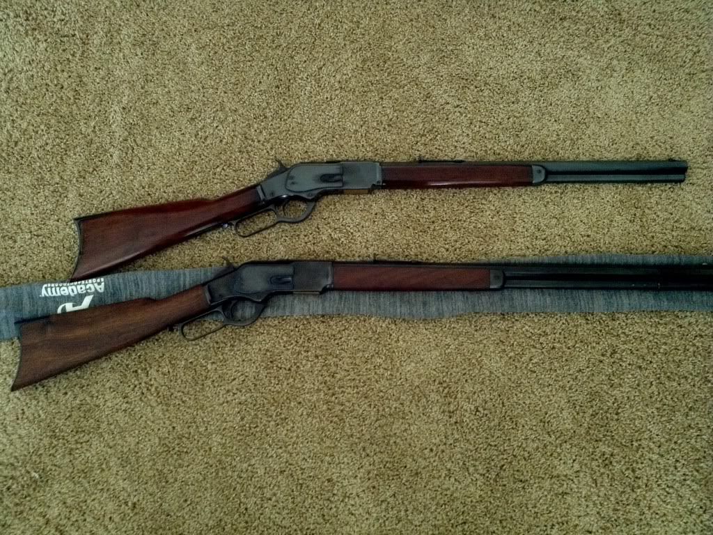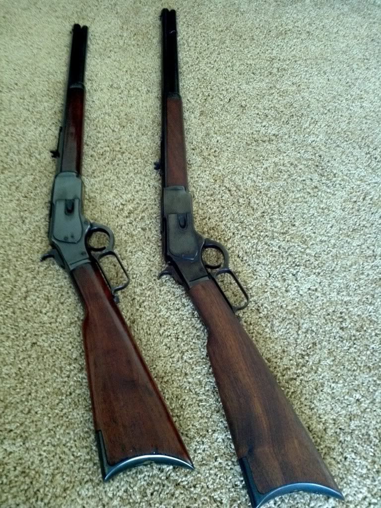 The shorter one I haven't done any back tracking on it yet but picked it up off of a feller that needed money and was his fathers old gun collection who had passed away. They are chambered in 44-40 and I believe 38-40.
