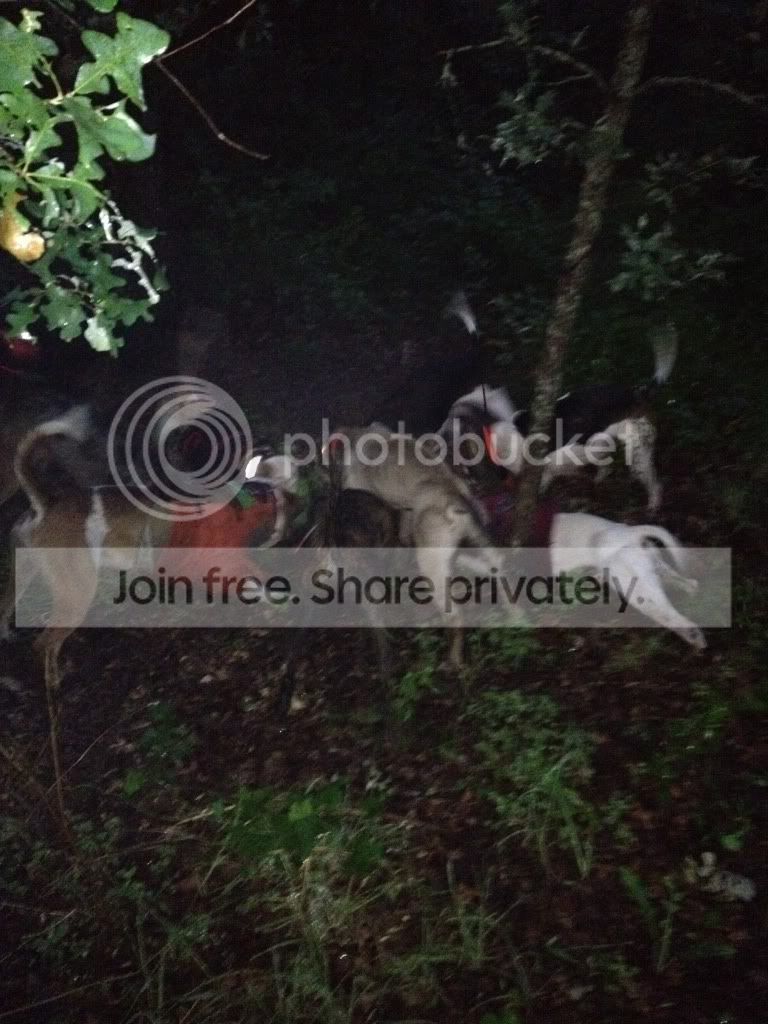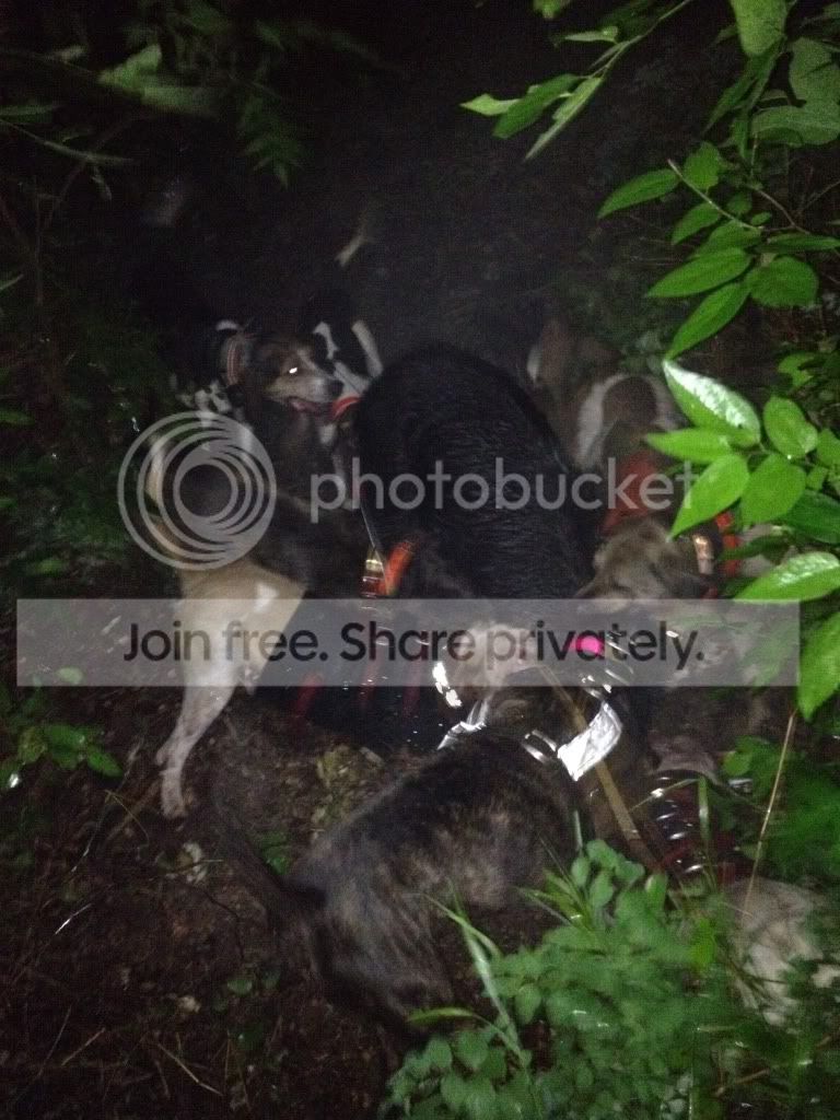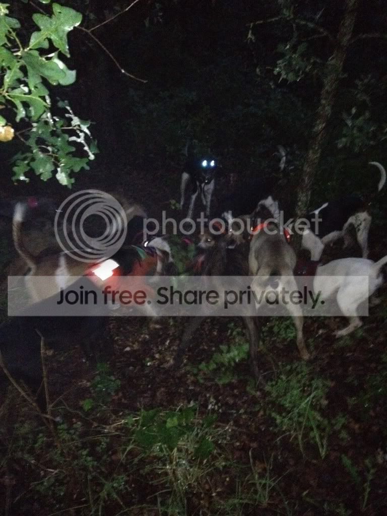 Wasn't planning on hunting but got a little shower Friday night and it cooled off to 65 degrees.  Just got Track off the IR list, we had some young dogs to work and the kids had been bugging us so we loaded up dogs and our 4 little good luck charms and headed out.  Struck hogs 5 minutes and kept rolling into them.  Andy picked up a nice little walker bitch that was a coondog reject cause she kept baying hogs.  She has been packing up with Sam nicely and they trailed one up almost a mile tonight and brought it to bay.