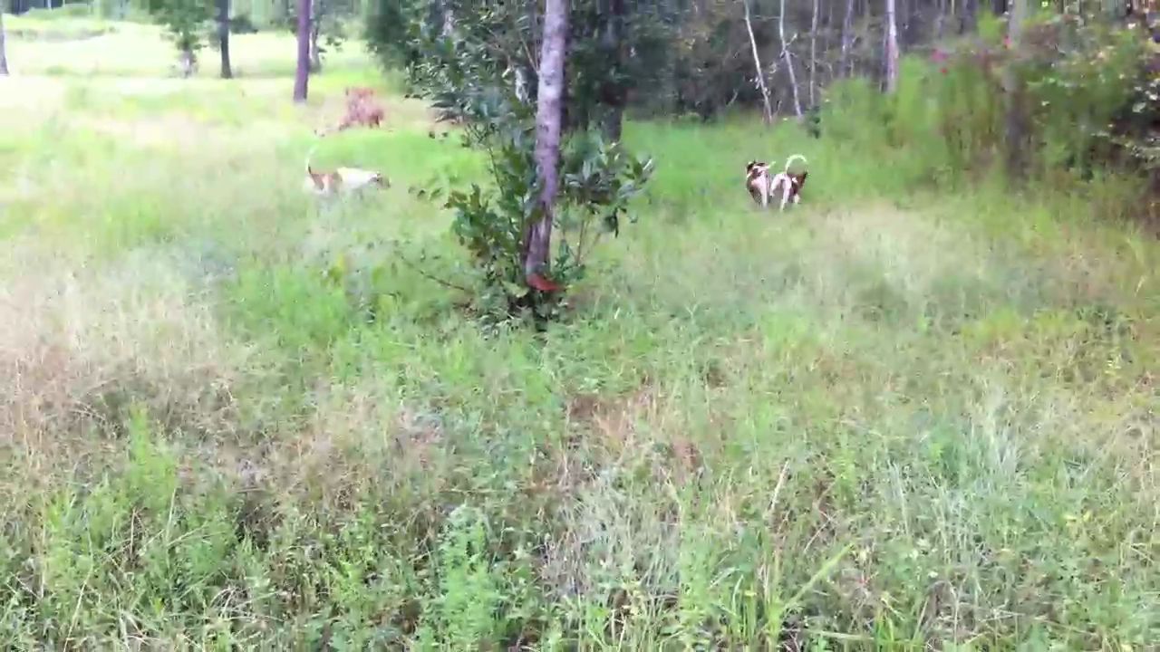 I laid down a little drag with a shoat about a hundred yards long and cut these suckers loose. This was the first time to find one on their own and it took a second for them to figure out what was going on. I am looking forward to hearing these three in the big woods after deer season.