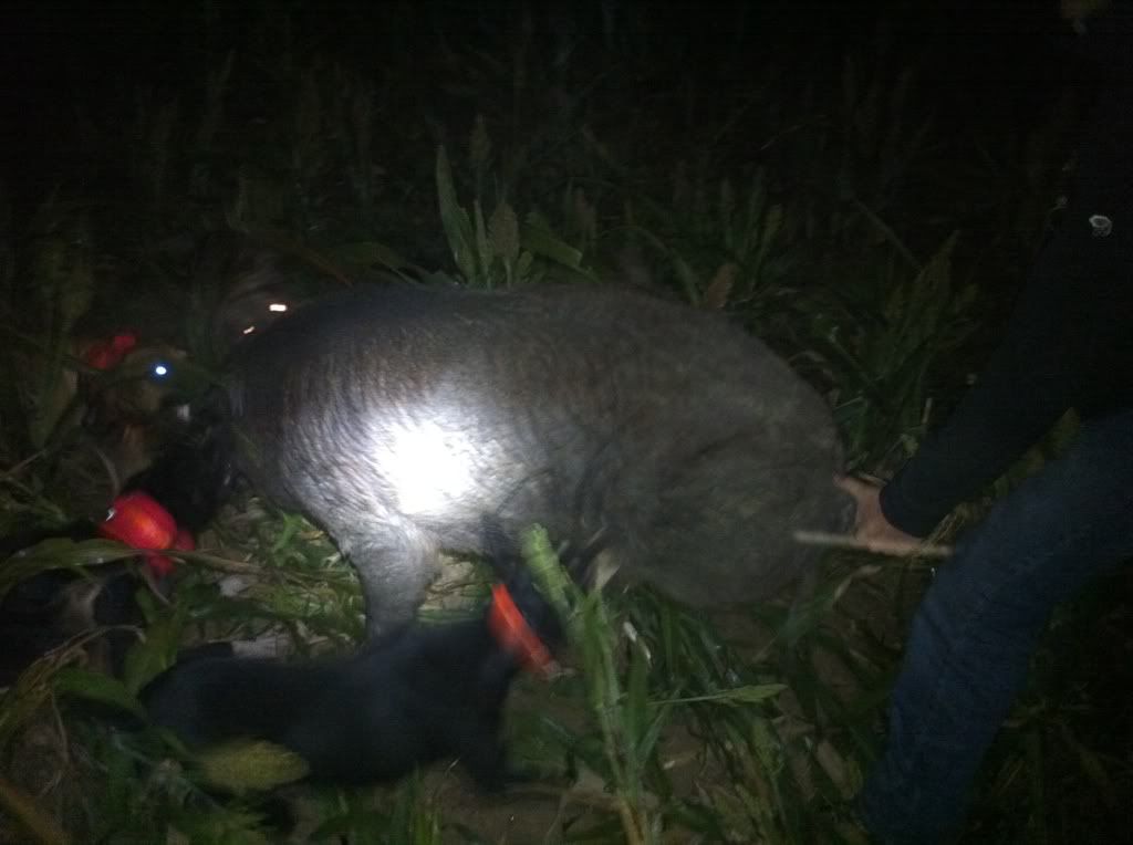 Thanks yeah we lucked out an the dogs got him caught on the edge of the crop we got to drive about 30 yards from him. Yeah he tested out old brigg my rcd dog a little bit the 3 old cur dogs weren't helping him catch, my buddy turned 2 young ruff pups from the truck as me an chris were nearly to the pig an they got their an helped catch just before we did.