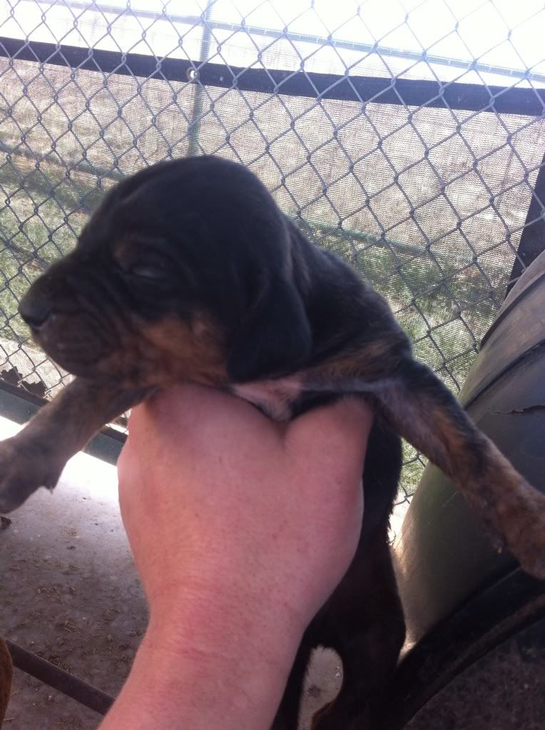 Out of my Sue dog for those of you that know me, dad is a very good bmc of a guy I used to hunt with Pups are 16 days old today. They are are 7/8 bmc and 1/8 plott.  Male  Male  Male  Female  Female  Female  Female