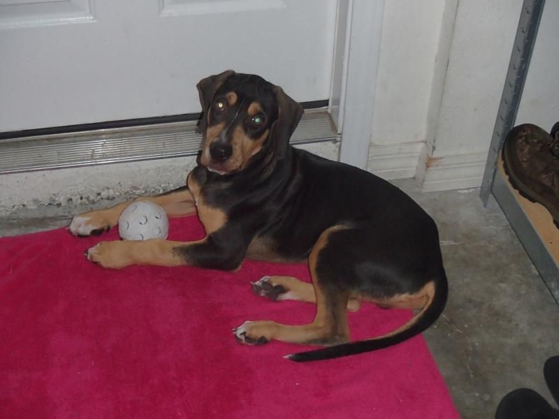 He is crate trained, house trained, doing okay on the lead (his dad hated the lead), and swimming alot!! Keeps jumping in are pool!! When his teeth get in around 7-8mo old he will be heading to the woods to hopefully be my next up a coming hog dog like his dad!!
