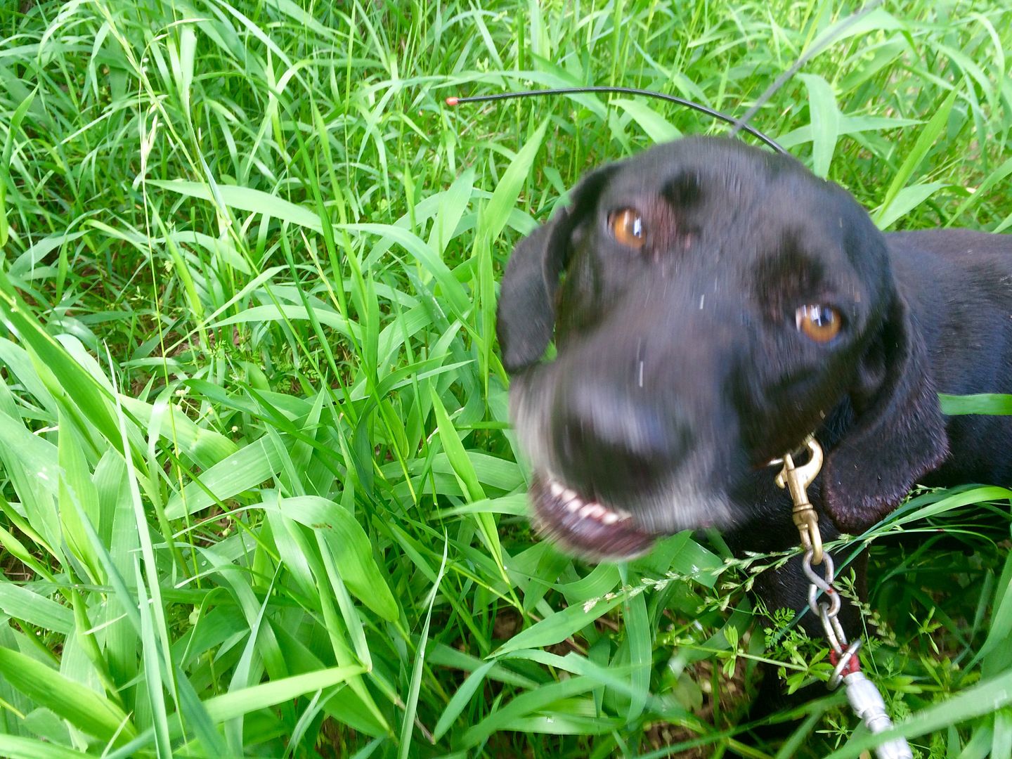 Had to crawl in and get Robert Vice's Young Spook dog .. I think he's smiling cause the briars cut me down haha
