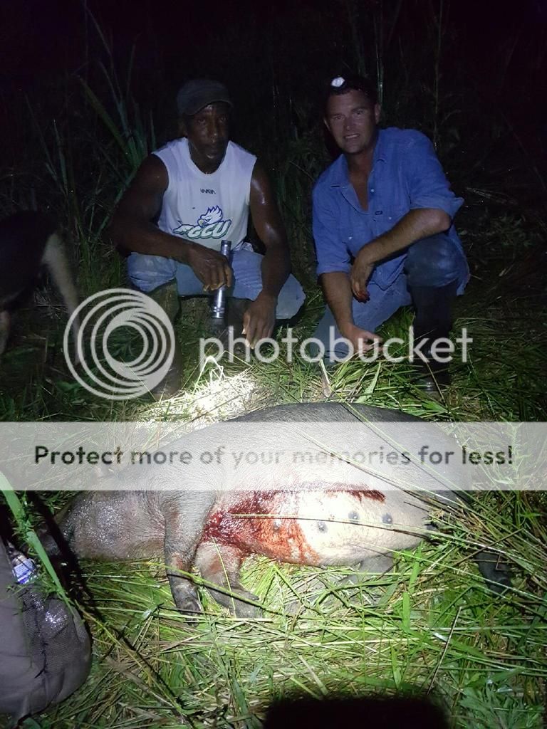 We got a call from a farmer in Ga who is having a hog problem.So we threw together a last minute trip mainly to meet the farmer and check out the property's.Headed up after work and got there about 11:30pm met up and loaded the buggy's.Made a loop around the first property and saw where the hog's we're coming in and leaving the corn from the neighboring property loaded up and headed to the next spot.Imediatly found some track's and put the dogs out.Henry and Zeus trailed off to about 700 and caught a fat sow.It was still really hot and the even at this time of morning.Hunted for a couple more hours and jumped a group dogs ran them about a mile off the property through planted pines and Briar's before we could catch them up by this time the sun was up and the dogs and us were cooked.loaded back up and drove 4.5 hrs back home.Had a good time and feel confident that the next trip we'll put it on them knowing the land a bit better.Its tough to show up in the middle of the night to a brand new spot and kill it but we done our best.