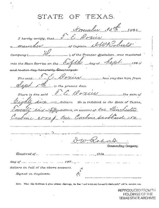Then we also have a copy of my great great great uncles first pay stub from when he was in the Texas Rangers, it shows where they deducted his pay for a winchester rifle and scabbard.