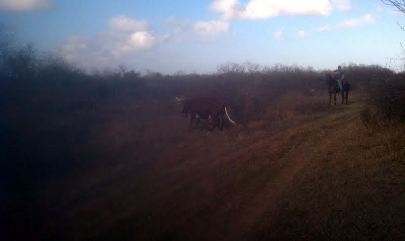 After we got her loaded up, we went back after the brangus cow. We put another 10 miles on the horses, in a 150 acre property, trying to get her caught. She would hit the brush, and between the youpan trees and the rose hedge, it was impossible to rope her, There's not much open pasture on that place, and she sure knows how to use the bush to her advantage. Two hours after dark we finally gave up on her. Planning to go back after her in a week or so. Hopefully I'll have some more pictures to share.