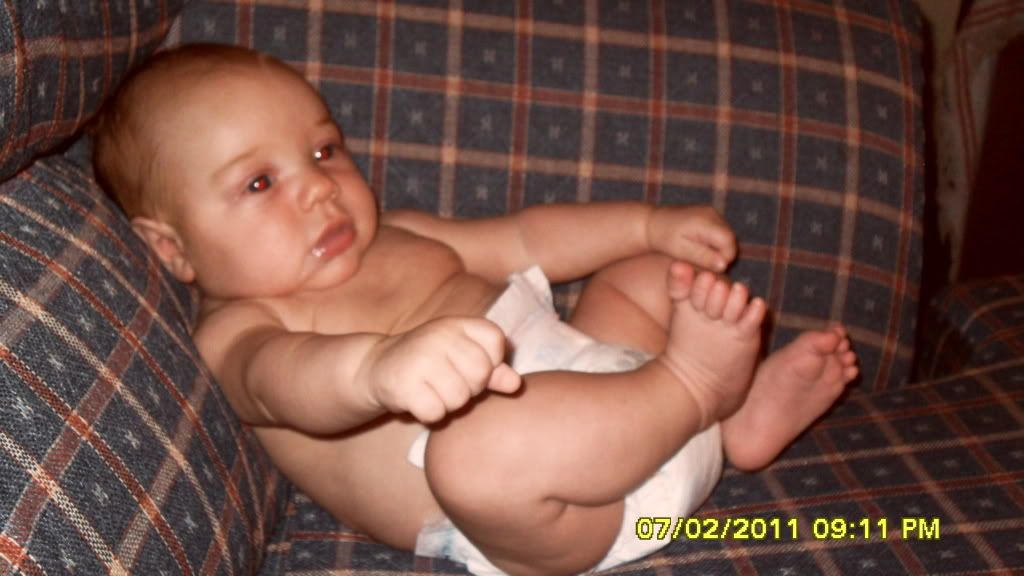 LOL he is three months old and weights 13 pounds, was 7 pounds 1 ounce at birth