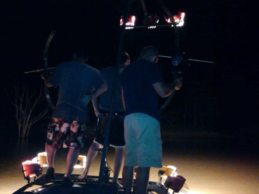This weekend the texas boys came up to play, had a great time with all you guys as always. We didn't get a chance to go hog hunting this weekend the temperature at night was 94 so here is some pics of what we done all weekend. Noodling was not the best but we did get 10 fish and have a big family fish fry, also shot a few gar and carp.  chance,s first fish of the day  me and a dare eating fish eggs didn't really eat any  ybm with good fish  good fish  ybm with another good fish  ybm trying to give a cold one to chance  end of the day  group pic  bowfishing late sat night.