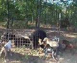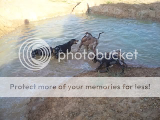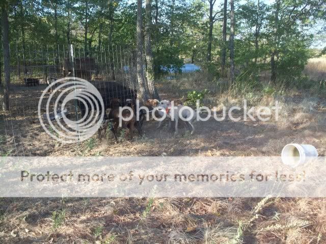 Beings work is slow i have had plenty of time so this morning I cut lose both groups of pups to see how the would get along so off we go all 7 pups 3 7 month olds and 4 5 month olds..     We headed off aroud the place and down to the tank or whats left and let the pups cool off and play around  then we headed to Wilburs pen and smooched them on him from about 50 yard of so and they bayed thier tails off and was doing lots of nipping through the fence when someone must of gave the hoga good nip and well the wild camee out and the grunting came on the sow and piglets came charging in for the rally   heres a short vid clp of the rally sorry for the shaky but the camera wouldnt change to video and i wanted a good clip of the pups workking ,, that didnt happen as you can see but it sounds good   I was proud how they played and worked together hope yall enjoy Dexter