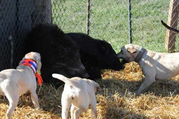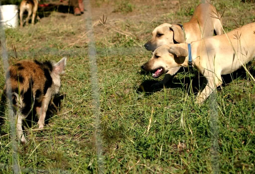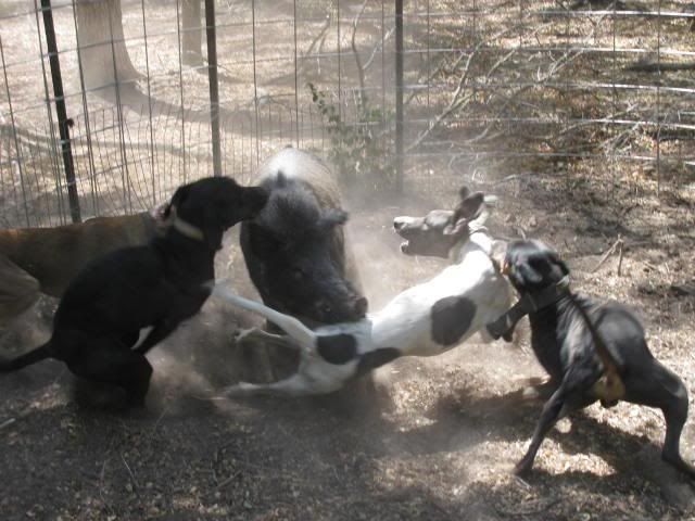 Two dogs on left are my friend Cort Bownds dogs the female on far right is mine. The video second from the bottom is my Karma pup seeing her first piglet at 8 weeks!