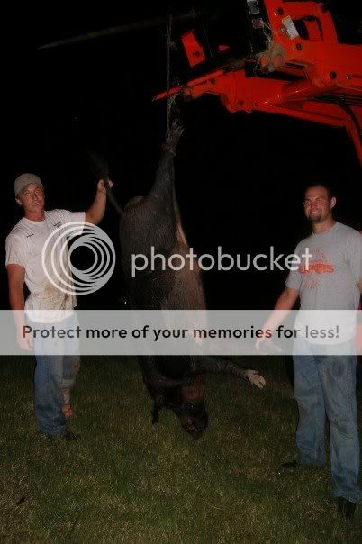 Sorry, no scale pics, but the hog was on the buyers scale at 360, but the head and feet wouldn't get off the gates... so we guessed it was little over 400.