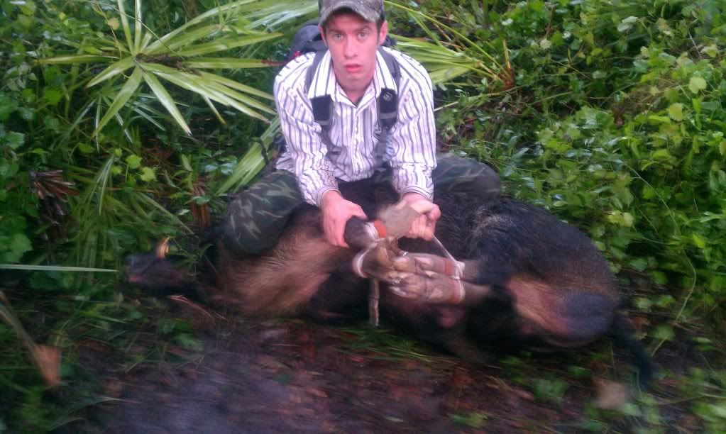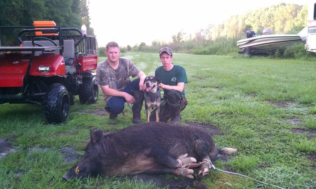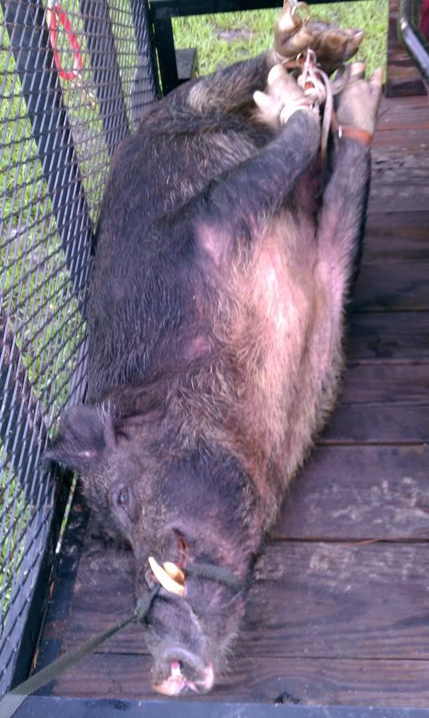 Yes that is Joker in the picture and the hogs ears were marked with a split in the middle of each ear. We haven't marked any around that area but there is a ranch down the road that he could wandered from. We caught a smaller hog last night that was built the same as the big hog so there's more where he came from