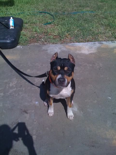This here's Tank my registered apbt about 93-95lbs. Sent from my ADR6425LVW using Tapatalk 2 Gotta love those tri-colored dogs!