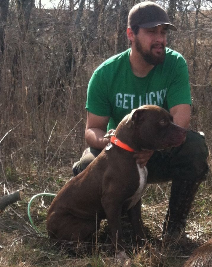 Friend lost his catch dog: Brown Pit with white chest. He was wearing orange vest and collar last seen north side of lake ray hubbard near wylie Contact Robert (214) 202-7098