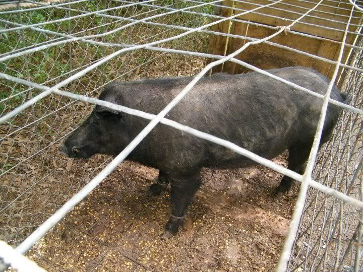 Here are couple of pics of the hog i call houdini who broke 2 pair of handcuffs and broke out of a baypen  this was after the 2nd time caught in a trap almost 2 years after fatally wounding my dog