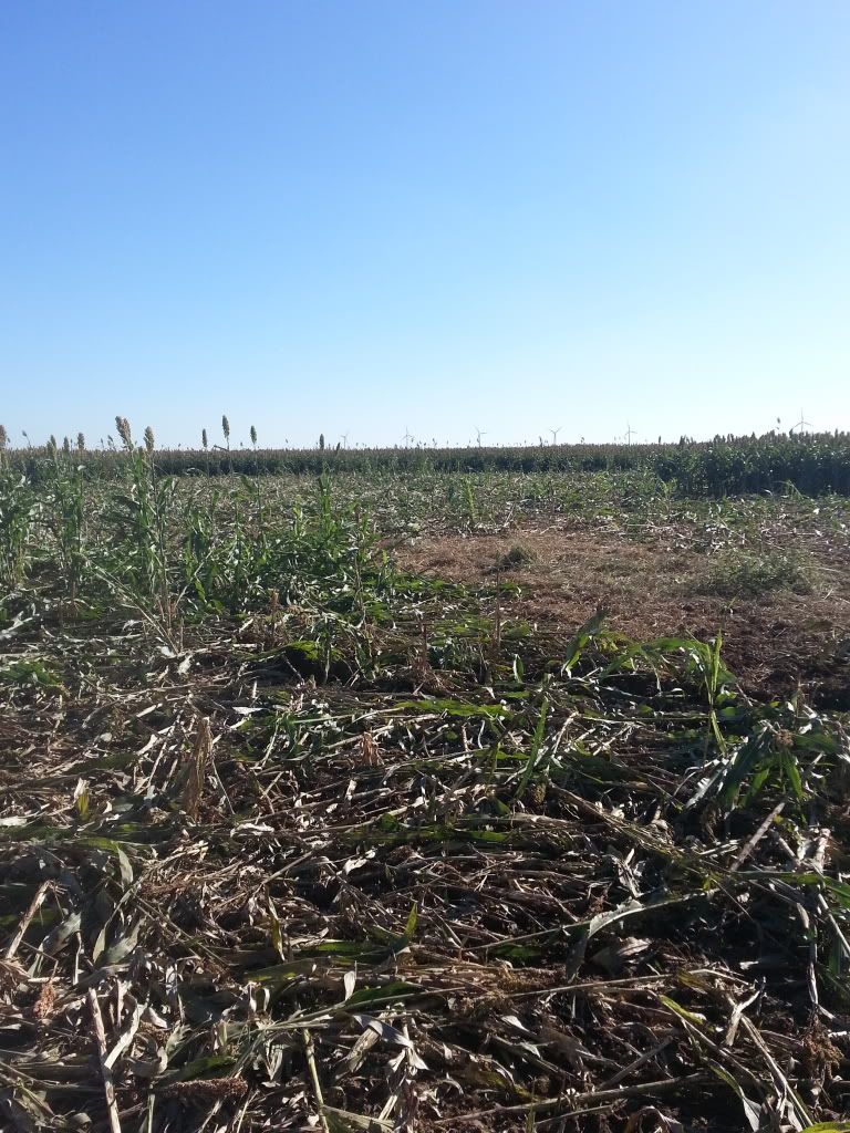 I got a new silage field yesterday that is absolutely torn up so I decided I wanted to go make a run last night. I called up my friend Josh and told him to show up at 8:30 and we loaded up 4 dogs, my catch dog josie, my reba dog, and josh brought two young cat gyps. We pull up to the field dump dogs and get out and walk into some of the wreckage the hogs have caused and it isn't two minutes before the dogs bay up 50yds from us, I release josie and it breaks right before she gets there, it breaks and runs 300 yds and the bay dogs bay up again with josie on her way there, josie hits and the fights on, I take off on foot busting through the thickest silage I've been in all year, it takes me about 5 minutes to get there, but all that is left is josie laying on her side not moving, joshs two gyps come flying by me about the time reba starts hammering down 80yds away, I pick josie up and carry her 70yds up close to the bay and stand her up, she could barely stand up straight but I new I had to catch the hog before they all started getting cut so I release josie and urge her in there, she gets there and swallows ear and I'm right on top of them to grab the hog, I leg it and get it stabbed pretty quick and take the vest off of josie and get her out of the field to some cool air and water. It was a quick but action packed hunt for me! The wreckage  Boar hog  My catch dog Josie