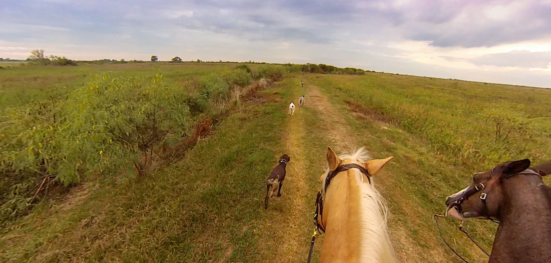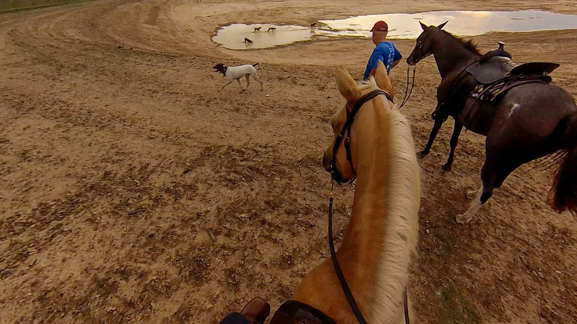 First time I've seen him honor another dogs point.     He's finally where I can run him off a horse . He had a set back when he put a nail sticking out a 2x4 through the webbing of his paw a while back but he's good to go now. He pointed , flushed and chased a covey of quail Sunday afternoon that a couple other bird dogs ran right pass. Right now the game with him is pointing quail and me shooting a .22 blank when they flush. his problem right now is he wants to see their eyes and he hasn't figured out yet to go on point with that first whiff of sent. It's just gonna take more wild bird finds for him to figure it out.